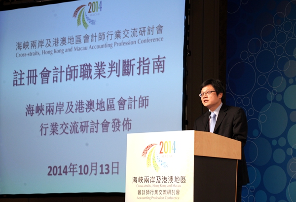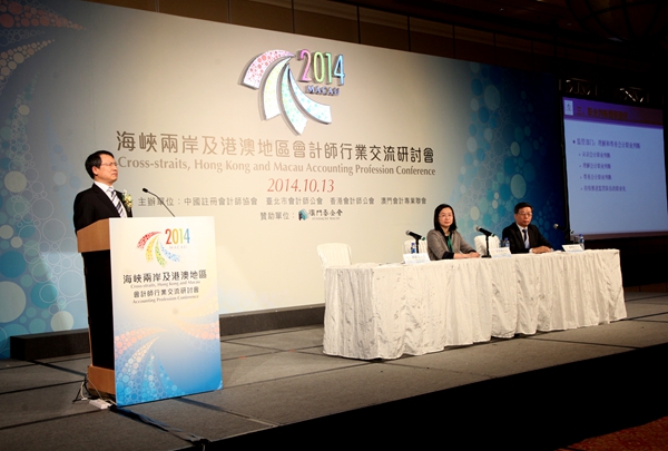10月13日,“2014年海峡两岸及港澳地区会计师行业交流研讨会”在澳门召开,来自两岸四地近500名会计师行业代表参加了本次研讨会。研讨会主题为“职业精神与职业判断”,并设三个研讨专题,即:“会计师诚信及道德标准”、“会计师事务所持续发展与保证质量的平衡”及“复杂经济环境中会计师职业判断的应用”。会议采取主题演讲、专题演讲及互动问答的形式进行。