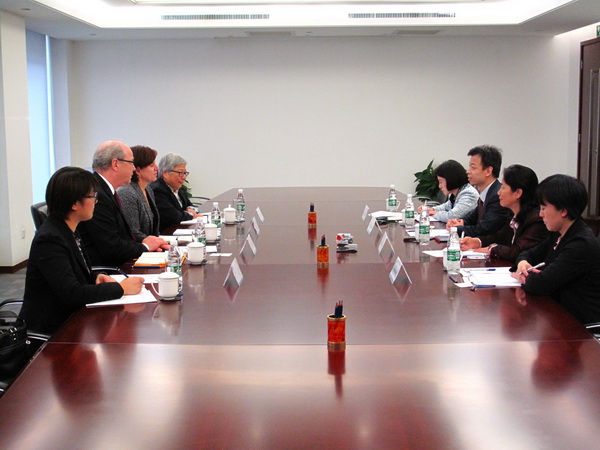 2016年10月26日,中国注册会计师行业党委副书记杨晨辉(右三)会见来访的加拿大特许专业会计师协会(CPA Canada)高级副会长塔西亚.巴斯滕女士(Ms. Tashia Batstone, 左三)一行。