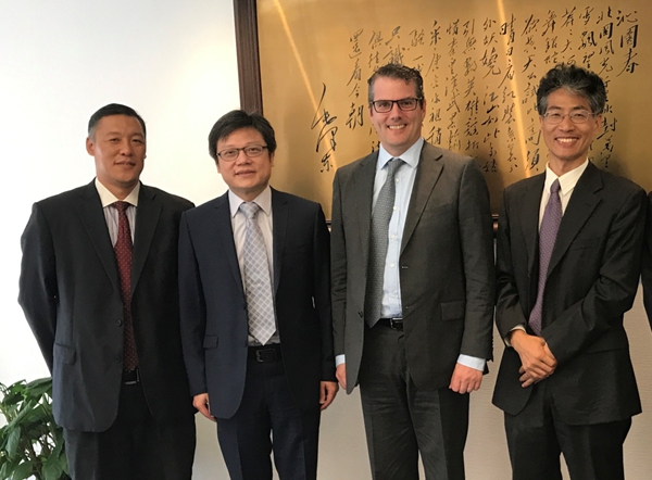 2017年9月7日,中国注册会计师协会副秘书长蔡晓峰(左二)会见来访的国际会计准则理事会(IASB)投资者联络部主任弗瑞德﹒尼耶都先生(Mr. Fred Nieto,右二)。