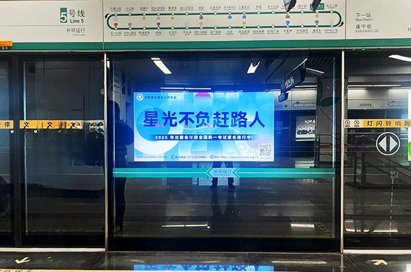 一是首次投放注册会计师考试公益广告,加大宣传力度。聚焦考生密集区域,在郑州地铁的二七商圈、紫荆山换乘站、CBD会展中心、郑州东站、龙子湖高校园区等核心站点投放23块主题灯箱广告,以“星光不负赶路人——注册会计师全国统一考试报名进行中”为宣传口号,覆盖日均客流量超百万的交通枢纽,精准锁定潜在考生群体。