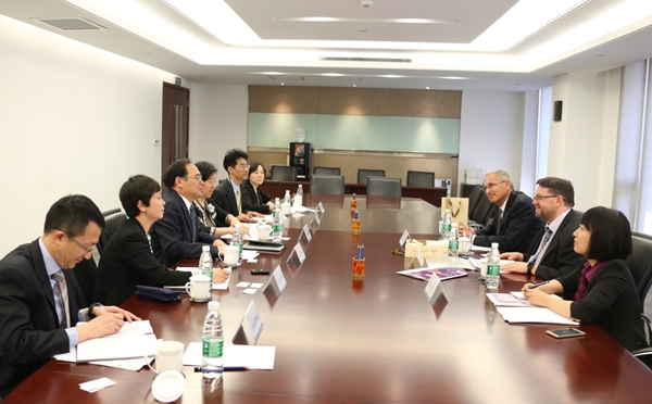 2016年5月16日,中国注册会计师协会副秘书长杨志国(左三)会见来访的英国特许公共财政与会计协会(CIPFA)执行总裁(Mr. Robert Whiteman,右二)一行。