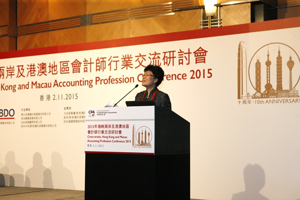 2015年11月2日,“海峡两岸及港澳地区会计师行业交流研讨会”在香港召开。来自海峡两岸及港澳地区的400余名会计行业代表参加。中国注册会计师协会会长冯淑萍出席研讨会并在开幕式致辞,大陆地区代表180余人参加会议。
