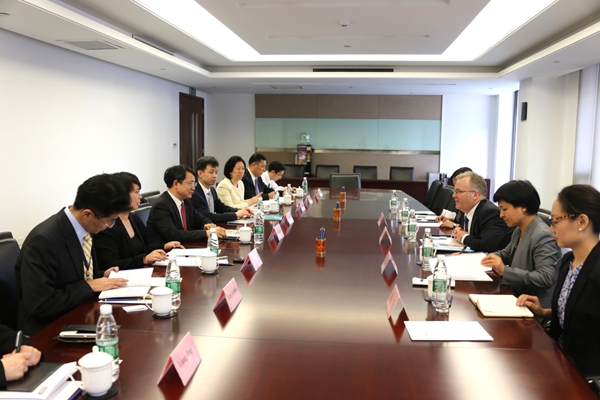 2015年5月7日,中国注册会计师协会副会长兼秘书长陈毓圭(左三)会见了来访的英国特许管理会计师公会(CIMA)全球执行总裁夏鼎先生(Mr. Andrew Harding,右三)一行。中国注册会计师行业党委副书记杨晨辉等参加会见。