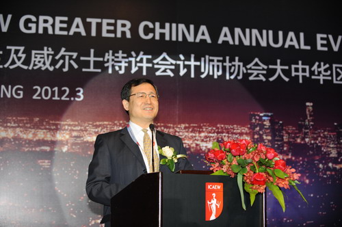 2012年3月27日晚,英格兰及威尔士特许会计师协会(ICAEW)在京举行特许会计师(ACA)项目毕业典礼,中注协副会长兼秘书长陈毓圭出席并致辞。