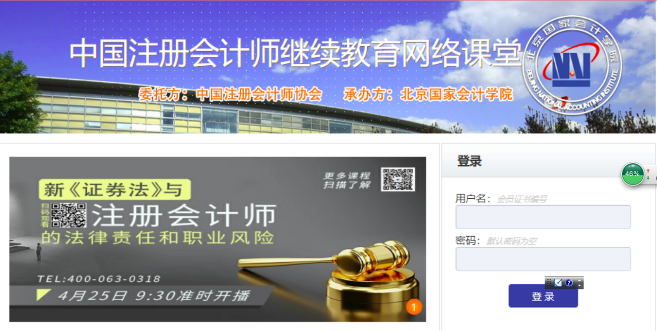 如下图所示,在页面输入用户名(会员证书编号)无需输入密码,点击登陆进入网络课堂首页。