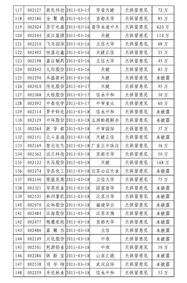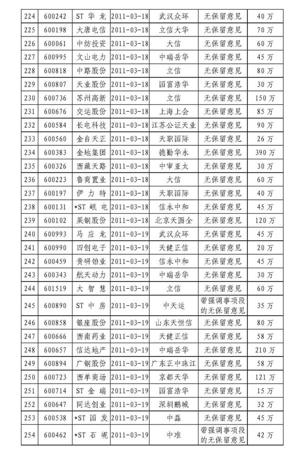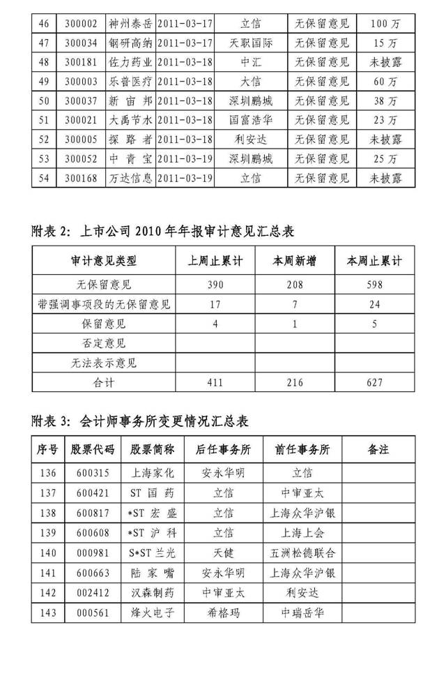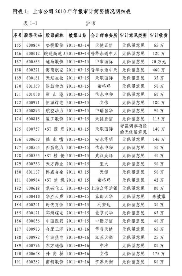 中注协发布2010年年报审计情况快报(第九期)