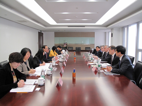 日,中注协副秘书长杨志国(左四)会见美国注册会计师协会副会长迈克尔