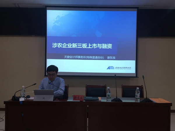 全国高端会计人才(注册会计师类)金融审计方向四期学员、天健会计师事务所北京分所授薪合伙人谢东良讲授“涉农企业新三板上市与融资”。介绍了新三板的挂牌条件、工作流程和意义,重点讲解了农村企业挂牌新三板的常见问题、融资和提升财务的途径。
