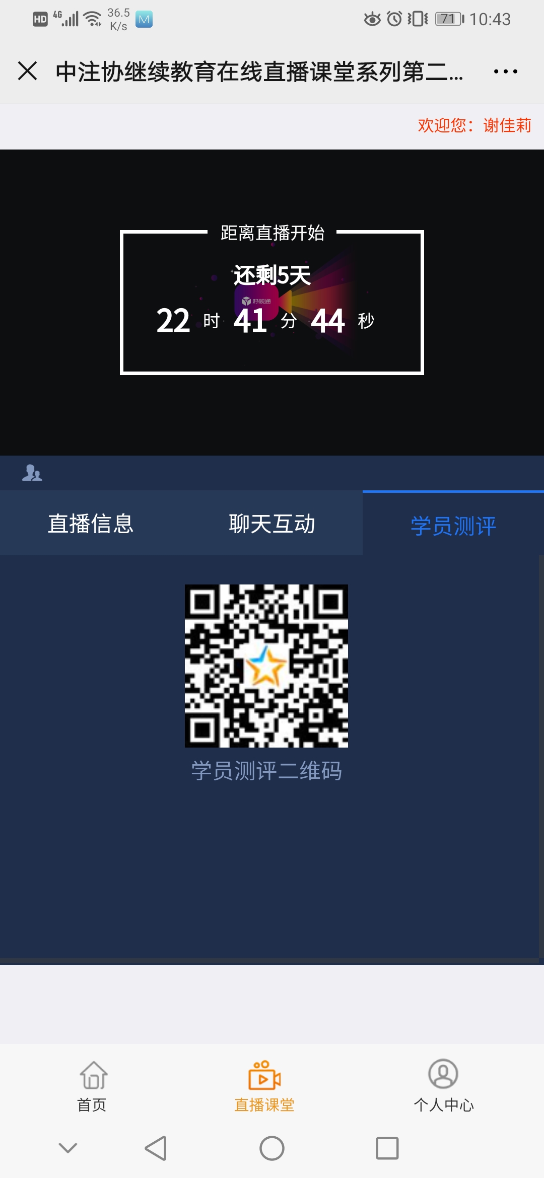 b.点击进入直播间,选择页面下方的“学员测评”,扫描二维码进行测评。