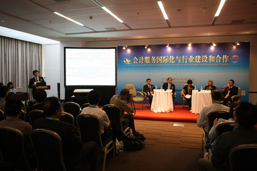 中注协蔡晓峰副秘书长主持“会计服务国际化与行业建设和合作”分论坛。证监会首席会计师贾文勤、中注协副秘书长杨志国、CAPA成员代表Gillian Fawcett、广东注册会计师协会秘书长丁跃文、西南财经大学工商管理学院院长杨丹分别发表主题演讲。